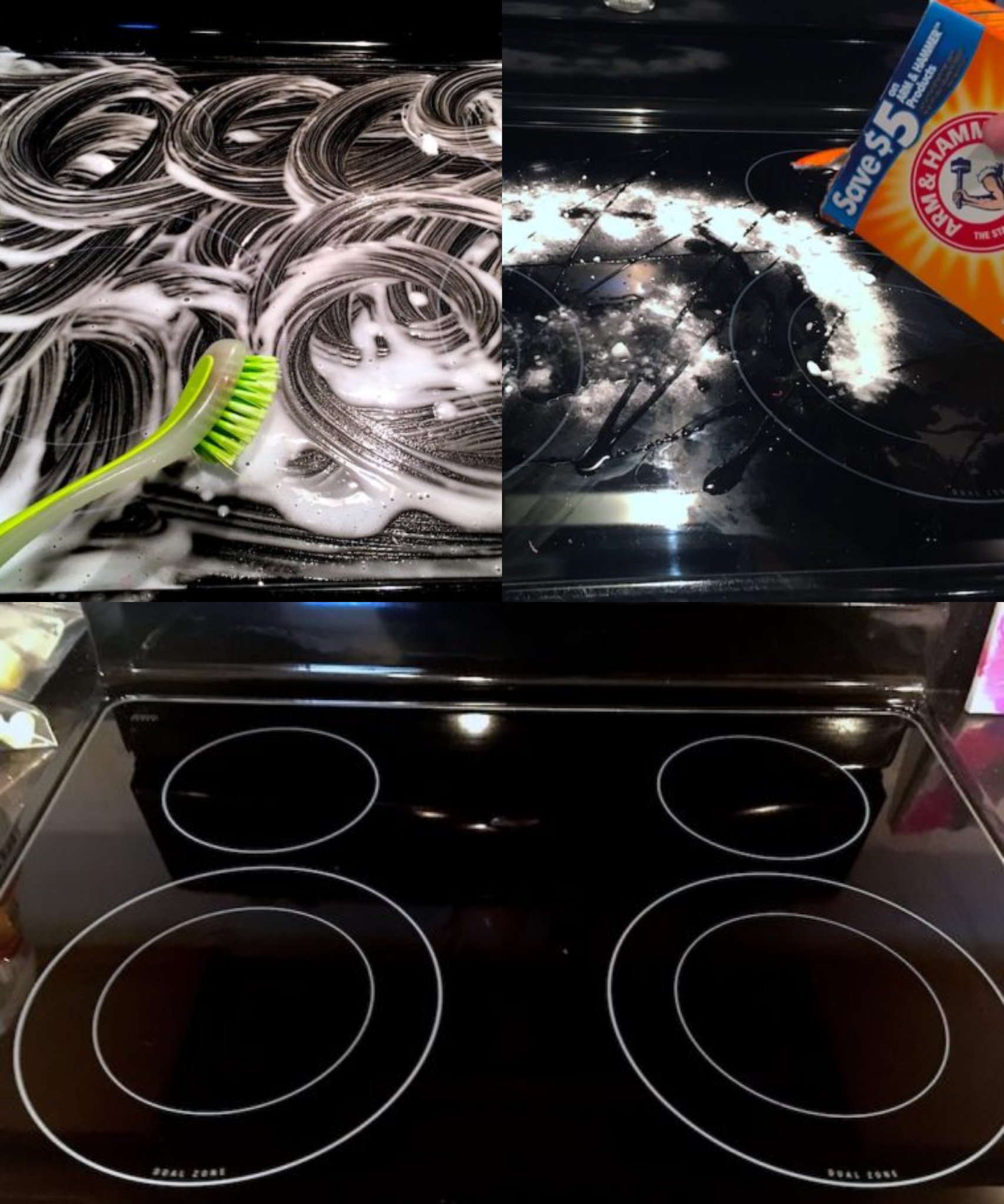 het mooie van deze schoonmaaktruc schuilt in de eenvoud. Je hoeft geen precieze hoeveelheden af te meten; je kunt de hoeveelheden gewoon schatten. Zo krijg je een sprankelend schone keramische kookplaat: